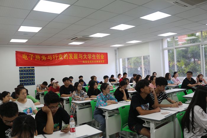 2019年9月24日下午,经贸管理系双创训练营在6号楼106开讲。此次讲座主题是“电子商务行业的发展与大学生创业”,由浙江商业职业技术学院陈崇侃老师主讲,经贸管理系18级学生聆听了讲座。