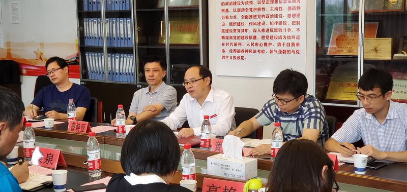 参观结束后,袁泉书记一行来到7号楼416会议室和机械技术系就双方所关心的问题进行交流。陶勇书记致欢迎辞,对袁泉书记等一行表示热烈欢迎,曹焕亚主任从学校办学特色、专业建设、教学改革、社会服务等方面进行了简要介绍;袁泉书记介绍了此行的目的,并对我校在“双高”建设中取得的成绩给予了赞许和肯定,双方针对基层党建创新、技能竞赛、校企合作及实训室建设与管理等方面进行了深入交流。双方希望以此次交流为契机进一步加强彼此的往来和交流。