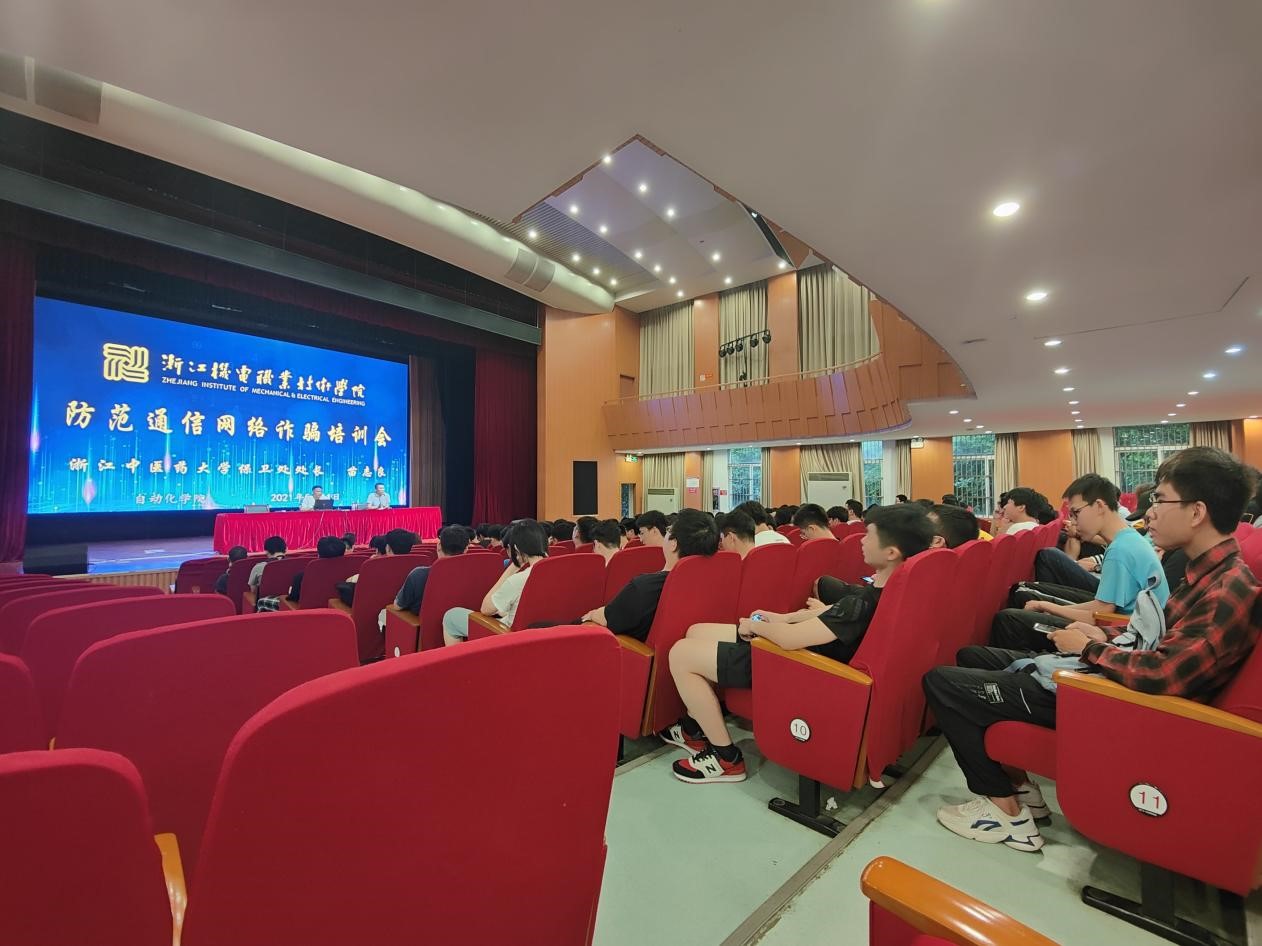 安全是人最基本、最重要的需求。安全知识教育对于我们当代大学生十分重要,我们虽身处和平时代,但身边的危险却无处不在。因此,为了让学生提高安全防范意识,掌握必备的安全防范技能,提高自我保护能力,2021年5月11日18:00,我校保卫处特邀浙江中医药大学保卫处处长苗志良同志,在滨江校区五号楼报告厅举行“防范通信网络诈骗培训会”安全教育宣传讲座,自动化学院滨江校区学生参与本次培训。