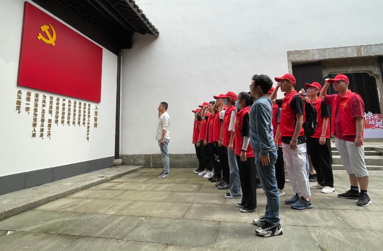 全体党员认真观看了中国共产党从诞生、发展到壮大光辉历程中的文史和影像资料,深切感悟到了中国共产党为争取民族解放、国家独立、民族复兴和国家富强而不懈奋斗的艰辛。全体党员充分感受到我们党的一百年是矢志践行初心使命的一百年,是筚路蓝缕奠基立业的一百年,是创造辉煌开辟未来的一百年。在杭州党小组纪念馆宣誓墙前鲜艳的党旗下,全体党员右手握拳,重温入党誓词,进行了庄严宣誓,在响彻云霄的誓词声中,回想自己跟党一起走过的路,心潮澎湃,更加坚定了对党的忠诚和信念。