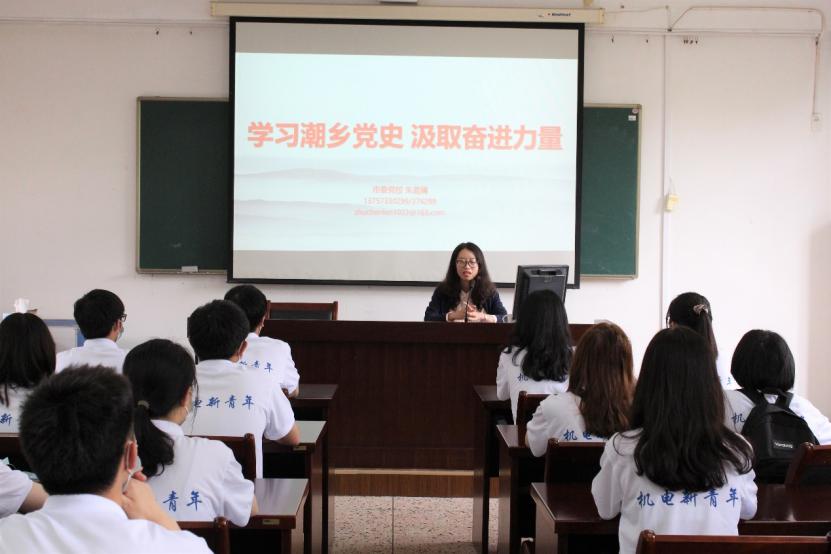 随后,市委党校朱晨斓老师做了“学习潮乡党史,汲取奋进力量”主题党史授课,她向同学们介绍了海宁地方党史发展建设的相关内容,加深了同学们对建党百年的印象,让同学们也更全面了解了地方特色的建党百年历程。