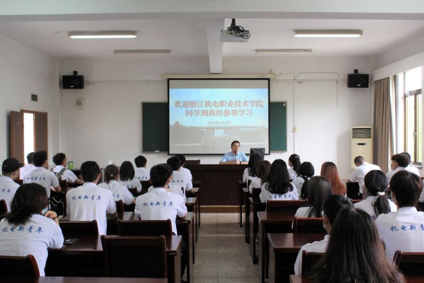 首先,党校办公室主任陆俊对机电学子的到来表示热烈的欢迎。他向同学介绍了海宁市委党校的建设历程,并对党校的特点、性质和所承担的任务等方面进行了说明。陆主任勉励同学们要努力学习,刻苦钻研,为国家建设和民族复兴贡献一份力,他希望同学们努力成为党的事业的优秀接班人。