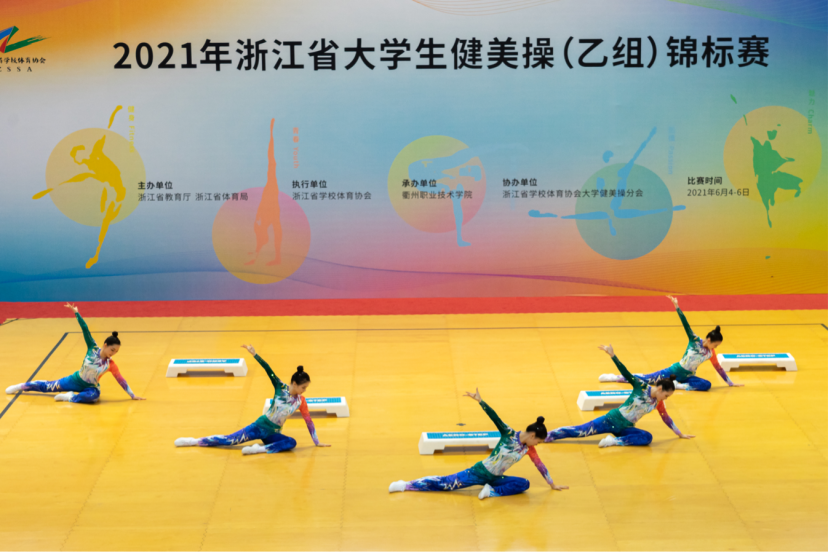 6月6日,2021年浙江省大学生健美操(乙组)锦标赛在衢州职业技术学院落下帷幕。本次锦标赛由浙江省教育厅、浙江省体育局主办,比赛共设竞技健美操和全民健身操两个大项,共有来自全省各地15支代表队,200余名运动员同场角逐。