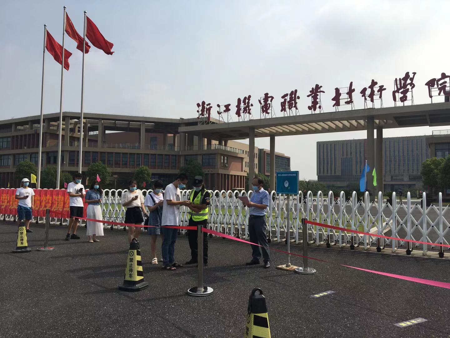 安保人员查看学生录取通知书、健康码、防疫行程卡、测温