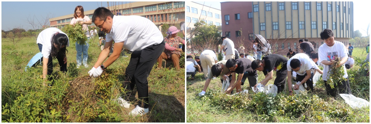 金秋时节,丹桂飘香。在国庆节来临之际,为抒发广大师生爱党、爱国的炽热情怀,教育引导学生崇尚劳动、尊重劳动,培养学生树立正确的劳动价值观和良好的劳动品质,丰富校园文化生活,9月27日上午,海宁校区管委会党总支与海宁校区分工会联合组织开展“爱国、爱校、爱劳动——师生喜迎国庆节”为主题的桃李林花生采摘活动。共200余名师生参加了本次活动。