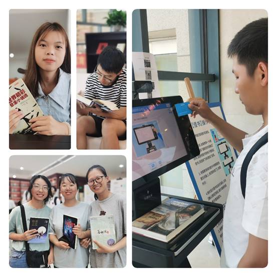 新生读者在瀑布流屏幕上动动手指,选取自己喜爱的电子书,就可用手机将电子书扫码带走;亦可在朗读亭里体验一把音韵之美;和闺蜜一起猎一本心仪的图书;寻找属于自己的静谧一角……新馆的科技元素和人性化布局让新生读者们惊呼“没想到”“好厉害”“最强网红打卡地”。
