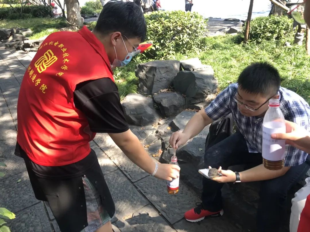活动开始后,大家整装出发,劝导抽烟的游客灭掉手中的香烟,在劝导的过程中大部分游客都很配合的灭掉了香烟,当然也遇到拒绝的游客,这说明无游烟西湖还任重道远,但是我们深信通过我们每个同学的努力,影响身边人,无油游烟西湖肯定早日实现!