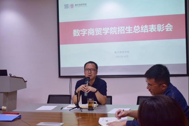 10月14日晚,数字商贸学院在2号楼会议室召开了分院招生宣传总结会,数字商贸学院党总支副书记符强、学工办副主任王慧、辅导员周晓东、学生代表共计50人参加了此次会议。会议由周晓东老师主持。