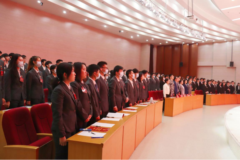 最后,数字商贸学院第一次学生代表大会在青春洋溢的《光荣啊!共青团》中落下帷幕。