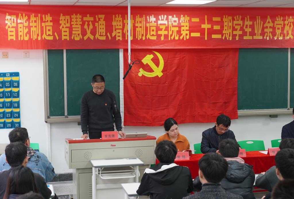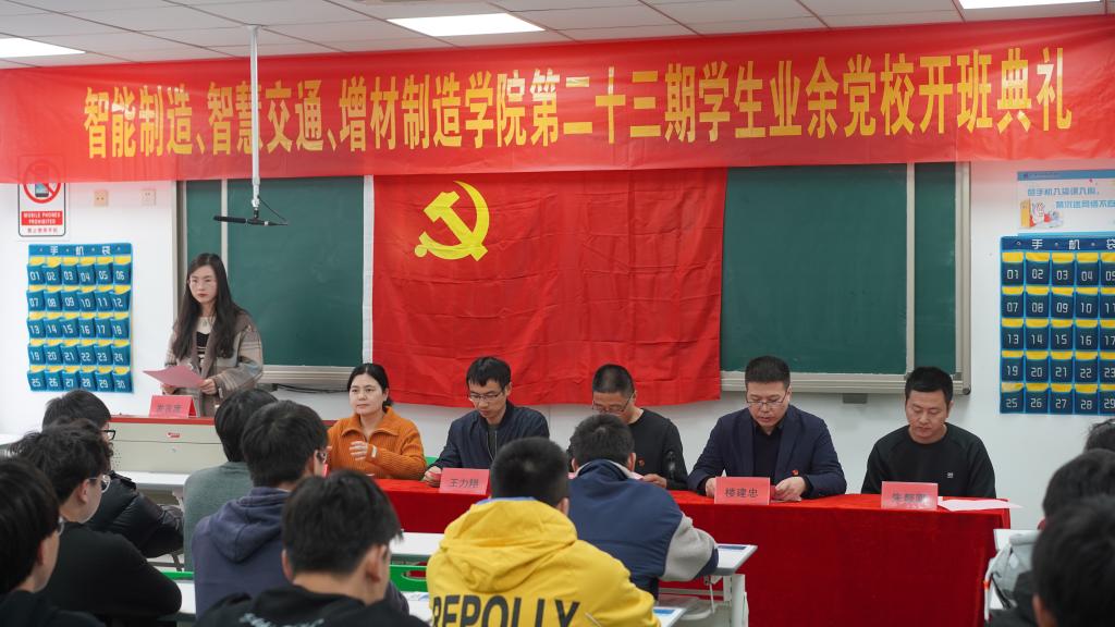为深入学习习近平新时代中国特色社会主义思想,贯彻落实党史学习教育,学习十九届五中、六中全会精神,庆祝中国共产党成立100周年,智能制造学院、智慧交通学院、增材制造学院于11月17日在6号楼106教室联合举办了第23期学生业余党校。智能制造学院党总支书记倪勇、增材制造学院党总支书记楼建忠、智能制造学院学工办主任王力翔、增材制造学院学工办主任朱靓卿、智慧交通学院学工办副主任姚婷出席本次开班典礼。