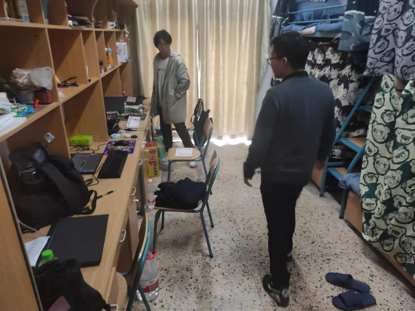 走访中,绝大部分寝室在寝室文化建设、个人物品的摆放等都能够尽可能地充分利用空间进行合理布置,形成了各自的寝室文化特色。同时,老师们仔细询问了解同学们生活中是否有什么困难,叮嘱同学们要妥善保管好自己的贵重物品,学会合理安排在校的学习和生活。告诫大家一定要注意用电安全、人身安全和外出的安全,要爱护居住的环境,勤收拾、勤整理、勤维护,尤其不要使用大功率电器,牢记安全第一。此外,对部分不合格寝室,提出了具体整改要求。