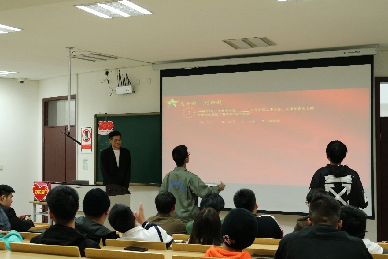 知识竞赛采取现场答题的方式进行,比赛分三轮进行,第一轮两两对抗选出五位进入第二轮,第二轮第三轮为个人赛,选择题和主观题的搭配方式,让同学不仅对党史理论知识有了深入的了解,同时又能与在场的同学分享自己了解到的党史知识。整个参赛现场气氛紧张而热烈,选手们沉着应战、积极答题,充分展现了增材制造学院全体同学一心向党的坚定信念和将小我融入大我的崇高情怀。
