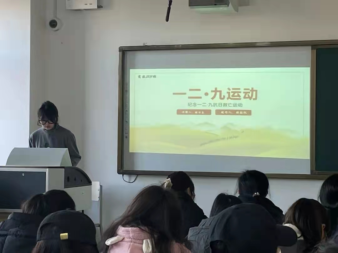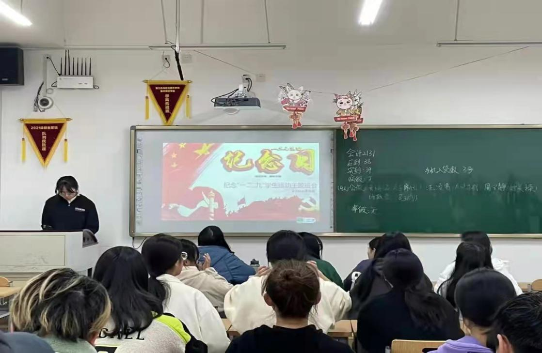 “一二九”是运动一个爱国运动,是学生们在中国共产党的领导下举行的一次抗日救亡。1931年,日本侵占了我国的东北、华北地区,国民党采取了“不抵抗”政策。中共带领北平学生六千余人高举“停止内战,一致抗日”、“打倒日本帝国主义”的旗帜,举行爱国运动。这次爱国运动有非常深远的意义,打击了日寇与国民党的反动气焰,推动了抗日民族统一战线的建成。为纪念“一二九”运动86周年,弘扬爱国精神,加强学生思想政治教育,数字商贸学院于近日开展了“一二九”主题班会活动。