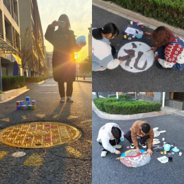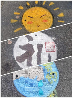 大家经过前期精心准备,选出了积极向上、形象生动的稿图对校区内多个井盖进行涂鸦创作。活动中,同学们用自己的妙笔巧手使校园中原本平淡无奇的井盖穿上了新装,一个个灵动的图案跃然而出:有的是一个遨游太空的宇航员,有的是一头巨大无比的鲸鱼、有的是一个金灿灿的太阳……同学们的奇思妙想不时引来路过的同学驻足观赏、发出阵阵赞叹。
