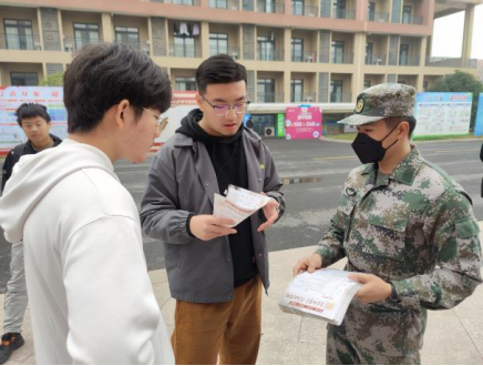 二是人武部组织进行集中宣传。12月14日-16日校人武部分别在两校区悬挂宣传横幅,同时向过往的学生发放宣传手册、宣传单页学生介绍征兵的基本条件、体检政审标准及安置政策等,现场向适龄学生解答疑惑,讲解征兵优惠政策。