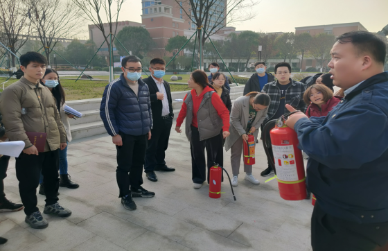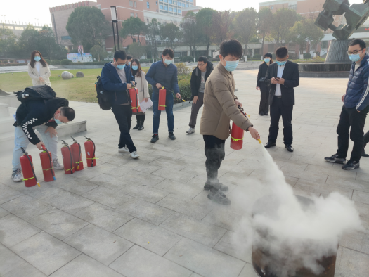 培训过程中,陈向阳向新进教师详细讲解了消防安全知识,并针对多种灭火器及逃生用品使用进行了现场演示操作。为了使新进教师掌握干粉灭火器的正确使用方法,在室外场地点燃了火堆,模拟了真实的火灾场景,分批组织教师演练使用灭火器扑灭初起火灾。