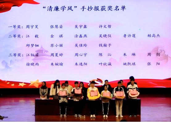 大会上各位老师宣读了2021级新生军训优秀教官、优秀助教、海宁校区第三届劳模培育班优秀学员、优秀文明寝室、“温馨雅室,你我同行”寝室美化大赛、“清廉学风”手抄报比赛、海宁校区防诈宣传先进个人获奖名单,并为获奖同学颁奖。