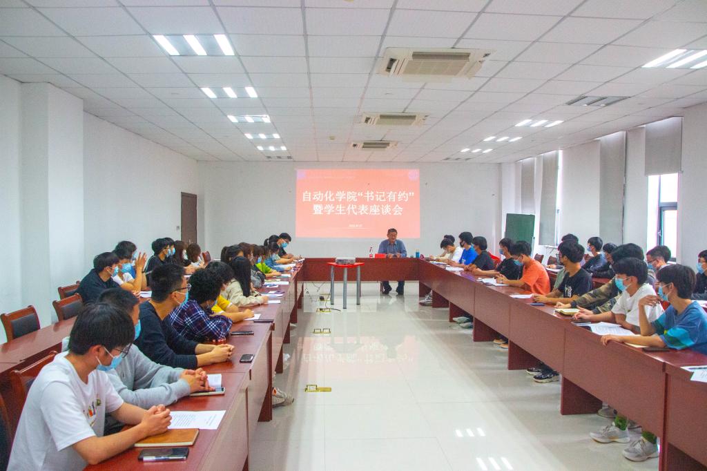 为深入了解同学们的学习、生活、工作情况和困难,强化党建引领作用,提高学生干部的先锋意识和责任意识,以保障学校教学管理的有序开展,传承和发扬自动化学院党建特色品牌项目,4月27日下午,自动化学院于海宁校区8-309举行了“书记有约”活动,学院党总支书记钱永林应邀与团学干部、班级学生代表进行面对面沟通和交流。辅导员庞万兴、吴梦佳、占林军出席座谈会。