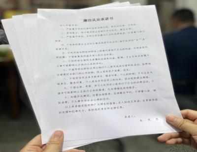 活动最后一项,教师党员签署《廉洁从业承诺书》。
