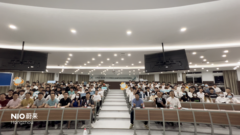 活动伊始,蔚来杭州商务市场负责人周颖为大家分享了他的个人职业发展经历,从一个“汽车人”的成长角度为现场的同学们带来了生涯规划与职业选择方面的启示,并阐述了自己从“蔚来车主”到“蔚来员工”这一转变背后的心路历程。