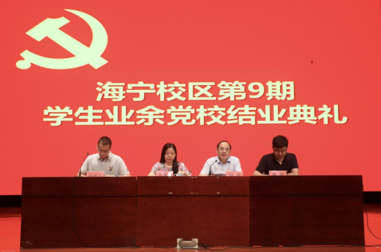 6月9日晚,海宁校区第九期学生业余党校结业典礼于小剧场举行。海宁校区管委会党总支书记陶勇、党总支青年委员方惠玲、党总支宣传委员杨秀飞、第二学生党支部书记杨哲出席,第九期学生业余党校学员参加本次结业典礼。结业典礼由杨秀飞老师主持。