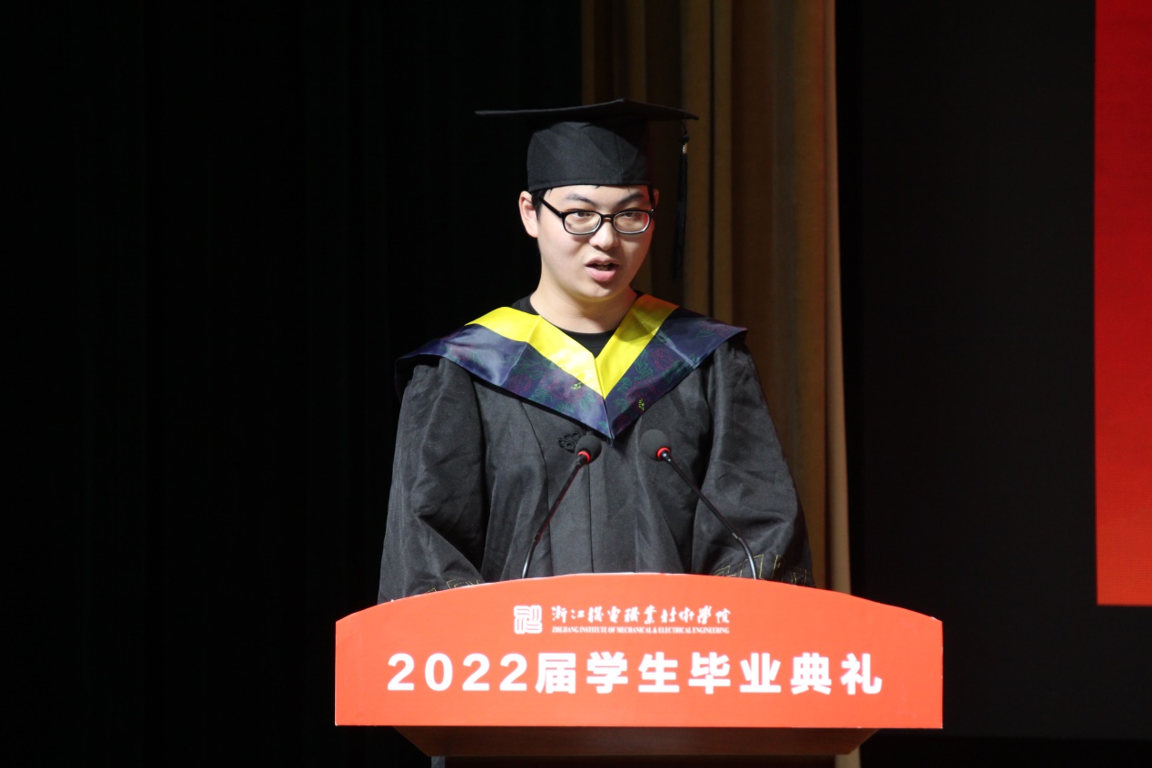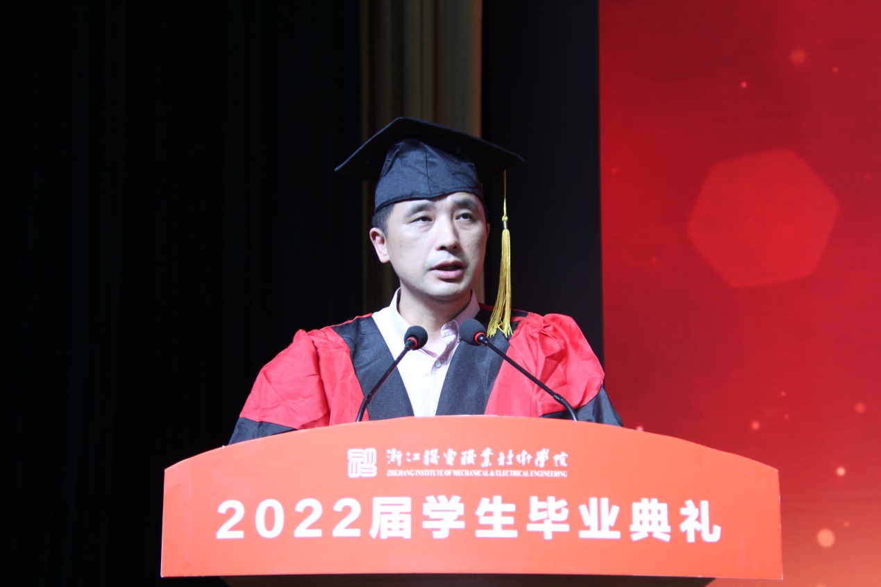 最后,浙江水利水电学院信息工程学院院长王军博士发表讲话。在见证浙江水利水电学院与浙江机电职业技术学院携手开展“双高”计划开花结果的重要日子里,他代表浙江水利水电学院信息工程学院祝贺获得学士学位的43名同学,希望毕业生今后不仅要以“求实、求精、求新”的校训为指引,也需牢记“自强、务实、尚德、求真”的八字箴言,诚挚祝愿即将各赴前程的毕业生前程似锦、不负韶华!