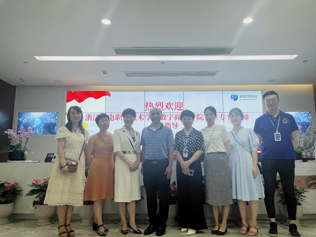 8月3日下午,为进一步健全“党建+”模式,发挥党建引领,促进支部党建工作与产教融合工作末端融合,共同促进,数字商贸学院院长、党总支副书记葛永明,教工党支部书记郑荷芬,宣传委员王艺洁以及支部骨干教师一行5人赴学院紧密型合作企业、荣获“杭州市先进基层党组织”荣誉称号的海盟控股集团有限公司开展调研。