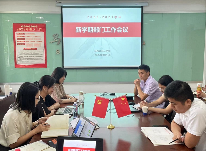 9月1日上午,马克思主义学院召开新学期部门工作会议,传达贯彻学校暑期中层干部培训会议精神,安排部署学院新学期重点工作。全体思政课教师参加了会议。