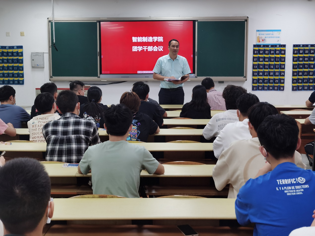 学期伊始,万象更新。为了保障新学期的学生工作有序开展,提高团学干部的执行力和积极性,9月5日中午智能制造学院召开团学干部工作会,部署新学期的工作计划与重点任务。分院党总支书记楼建忠、副书记汪荣青、学工办主任王力翔、辅导员及全体学生干部参加。