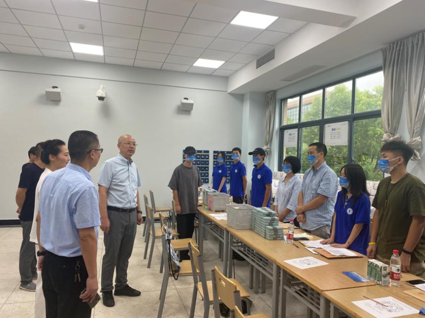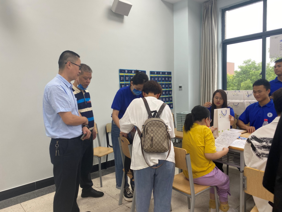 结合学校党委对疫情防控的指示精神以及学工部对开学报到工作的统筹安排,13日上午,学校党委书记汤兆武一行就来到现代信息技术学院报到点检查指导报到工作。汤书记亲切走进每一间报到教室,详细询问报到现场辅导员、班主任,助理班主任及志愿者工作职责,鼓励大家细致服务;与现场新生亲切交流,欢迎新同学的到来。学院院长卢涤非、党总支书记张荣路,党总支副书记朱爱民带领辅导员、新生班主任老师,助理班主任、志愿者们也提前到岗,落实开学报到的具体工作。