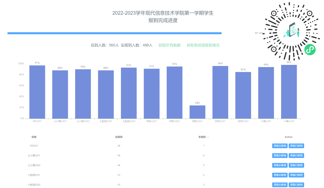 学院采取便捷化与数字化报到流程,疫情防控与报到工作齐头并进。采取一站式报到流程,集结多重途径联系新生,新生联系率100%。提升工作质效,教学楼报到点注册确认,班级设点分发资料,收集新生材料等一站式完成,保证新生进校快速、入寝通畅。依托信息专业优势,开发“数据实时看”小程序,报到班级、时间数据精准,实现学工与教学共享同步,学院到班级互联互通。