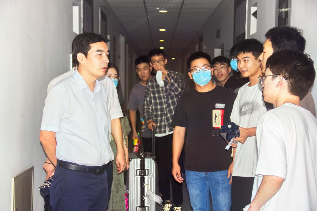 9月13日下午,我院党总支书记陈罡、党总支副书记罗鹏举及院辅导员深入2022级新生宿舍,与同学亲切交流,了解新生的基本情况,叮嘱同学们注意财产安全和寝室安全,并鼓励他们利用军训好好磨练自己,为以后的学习生涯打好坚实的基础。
