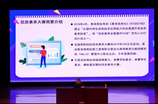 金秋送诗意,丹桂卷书香。为帮助和引导2022级新生熟悉我校图书馆的服务内容和流程,更好地发挥图书馆的教育和信息服务功能,学校图书馆于9月24日晚采用线上线下结合的形式为新生进行了图书馆入馆教育培训活动。刘利芳老师分别从图书馆概况、图书馆资源、图书馆服务和图书馆活动四个方面为同学们介绍了如何有效利用学校图书馆的各项功能。此外,吴慧群老师向新生做了《2022年全国高职院校信息素养大赛》宣讲,鼓励大家通过积极参加比赛,掌握专业的信息检索知识与技能,提高信息素养。