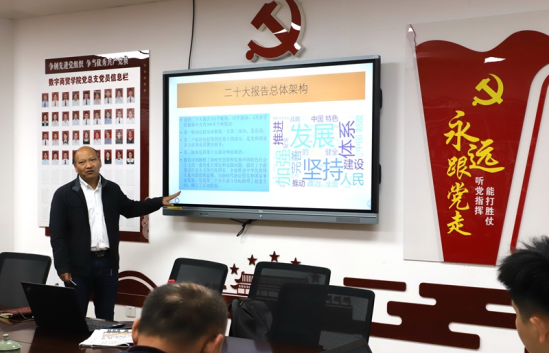 为进一步深入学习贯彻党的二十大精神,10月28日下午,数字商贸学院党总支理论学习中心组在滨江校区党员之家举行“党的二十大精神”专题学习会,会议由党总支书记程勤华主持,中心组成员以及各党支部书记参加会议。