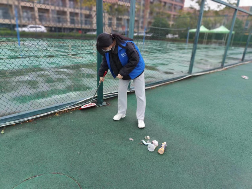 陈嘉欣:三小时的志愿活动说长不长,说短也不短。蒙蒙细雨中我们在诺大的操场上,放眼望去,散落在各个角落的矿泉水瓶、沾上雨水“躺”在地上的纸巾以及到处堆积的落叶,当代大学生讲究德智体美劳全面发展,我们不仅要学习课本上知识,也应该用实际行动丰富我们的校园生活。望着清扫完之后干净整洁的操场,心中不禁有一种舒适感,这大概就是志愿服务的意义所在吧。