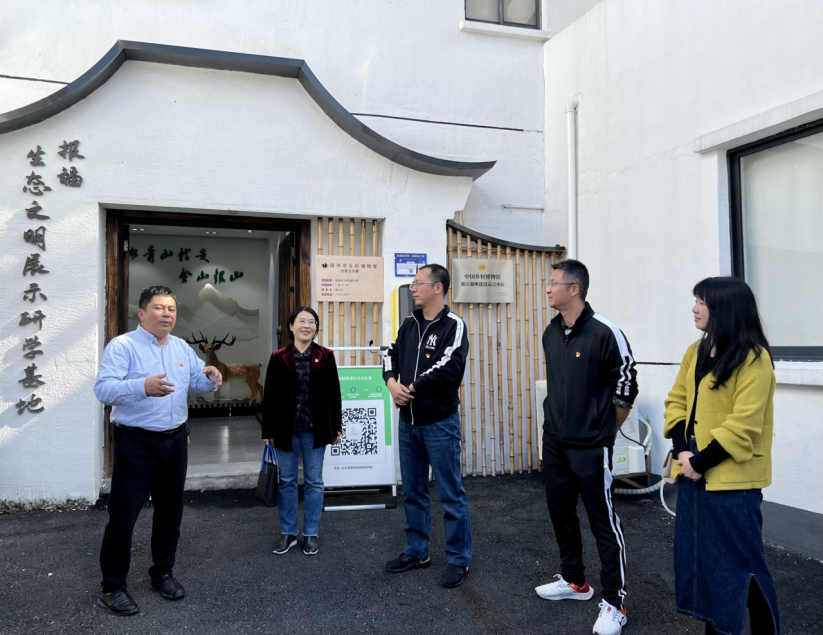 安吉县报福镇景溪村党支部书记黄大伟同志首先对邓劲莲委员及创意设计学院诸多同志表示热烈欢迎,并做了“践行两山理论,创建美丽乡村”的现场党课。黄书记介绍了景溪村群众非常感恩,在习近平总书记“绿水青山就是金山银山”的指引下,广大村民锚定目标、团结奋进,组织开展植被重建、建设生态公益林以治山,建设拦砂坝、绿化河岸以治水,生活污水生态处理、生活垃圾集中处置以治污,彻底改变景溪村的村容村貌,景溪村被评为国家3A级景区。村干部带领村民种植高效农业、发展乡村旅游、支持新业态发展,村集体经济不断发展壮大,村民的收入逐年提高,过上了属于自己的幸福生活。他向学院教师详细介绍了景溪村生态文明展示馆建设历程和美丽乡村的建设成果。