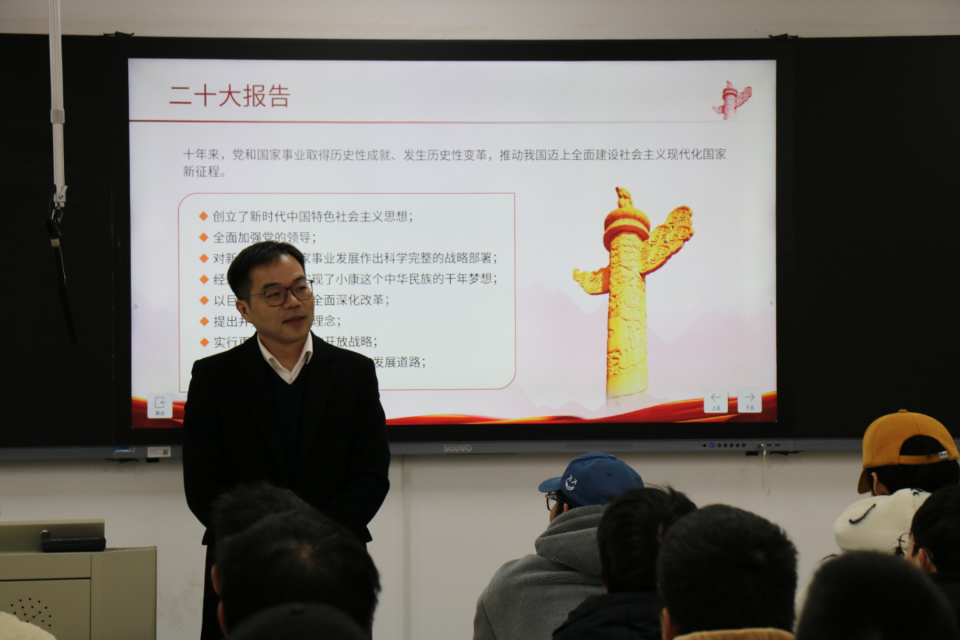 为深入学习宣传和贯彻党的二十大精神,学深悟透习近平新时代中国特色社会主义思想,深刻理解新时代新征程中国共产党的使命任务,进一步提高学生的党性意识,展现智能制造学院学生的良好精神风貌,以实际行动向党的二十大献礼,11月30日下午智能制造学院邀请了马克思主义学院副院长熊峰老师在4-210教室为我院学生宣讲党的二十大精神。