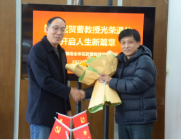 大家畅所欲言,抚今追昔,与曹教授共同回忆多年来工作中的点点滴滴,气氛温馨而感人。随后院长程方启为曹教授赠送鲜花,党总支书记楼建忠为曹教授赠送光荣退休纪念品。