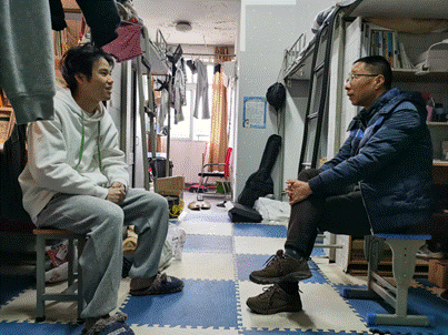 在走访过程中,倪勇院长亲切聆听大家分享在校生活的点滴,并认真询问他们在校生活、学习方面遇到的问题和困难,并就大家共同关注的事项给予及时的回应解答。