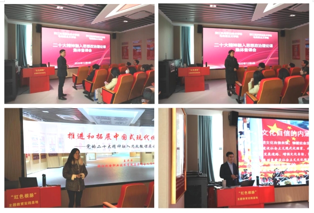 在结束主展区参观后,两校思政课教师在数字化智慧思政教室集中开展了二十大精神融入思政课的集体备课会。浙江经济职业技术学院马克思主义学院教师金向阳以《学习二十大精神,树立文化自信》为题,分享了关于文化自信与育人实践的思考;我校马克思主义学院思政课教师王平平以《如何理解中国式现代化》为题,给出了中国式现代化的浙江答卷。最后,双方就今后进一步强化交流合作交换了意见、达成了共识。