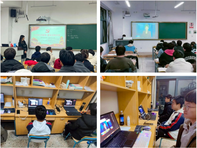 同时各班团支书在宪法日之际以线上会议或线下班会的形式展示宣扬宪法的PPT,播放与我国宪法有关的短视频以及学习习近平总书记在党的二十大上所作的发言,将宪法精神和党的二十大精神深植同学心中,引领班级同学们更深入感悟宪法和党的二十大精神内涵,从中寻找红色基因,传承红色血脉,回望过去、了解当下、展望未来。