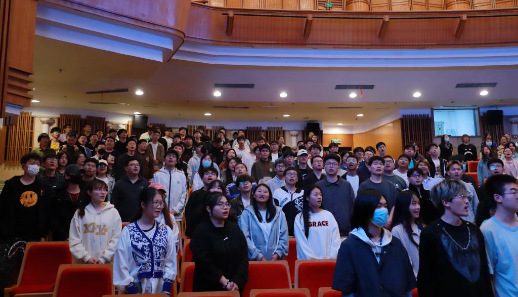 讲座开始前,来自学校现代信息技术学院、数字商贸学院、增材制造学院、智慧交通学院的百余位同学,一起参与到师生《大学》选段共读经典活动中。“大学之道,在明明德,在亲民,在止于至善。……”整齐划一的诵读声激励着在场的师生阅读经典,启迪智慧。
