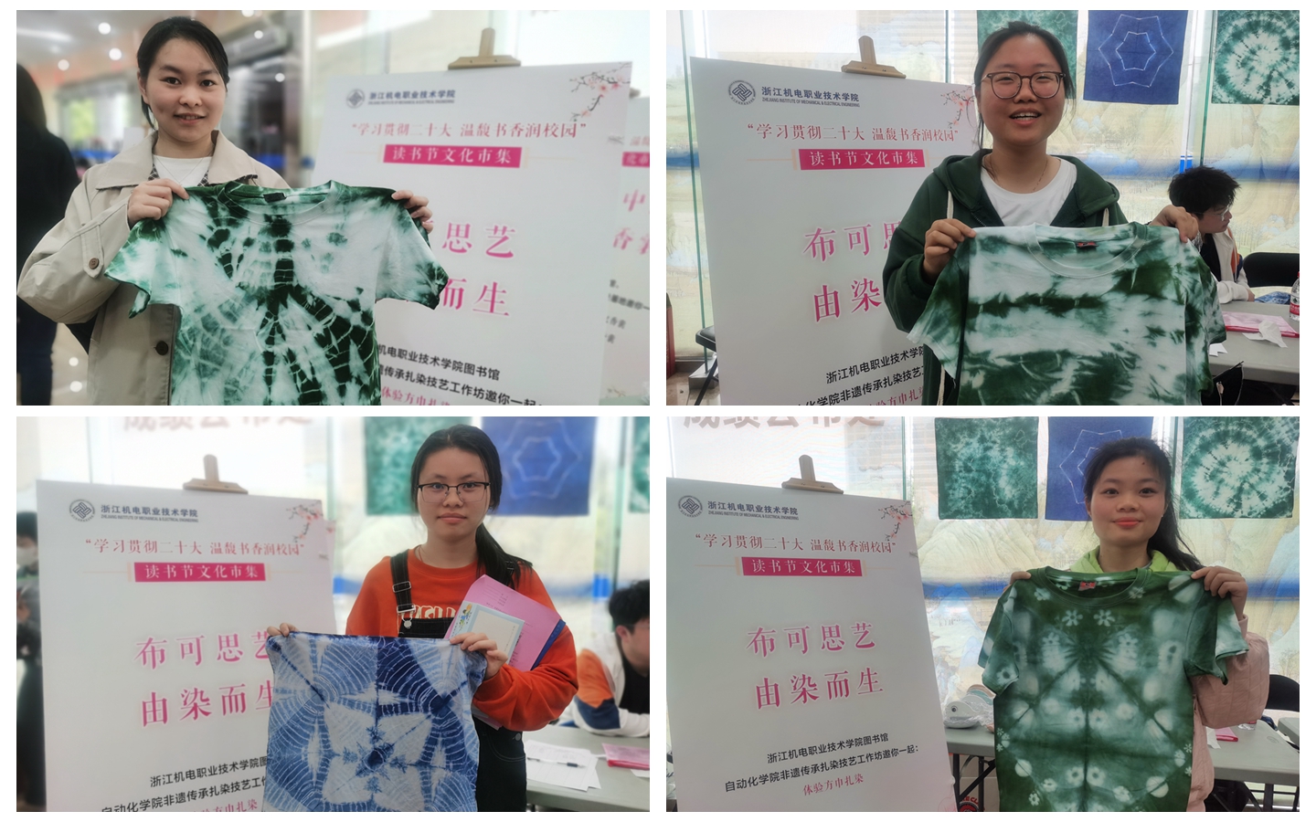 浙江机电职业技术学院图书馆联合自动化学院非遗传承“传统扎染技艺”工作坊推出“布可思艺,由染而生”扎染方巾制作活动。