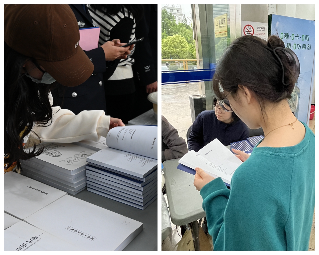 讲座结束后,师生们汇集在以阅读元素为主的文化集市驻足、沉浸、体验,享受来自滨江高校六馆的文化活动体验。