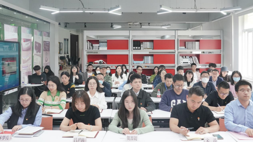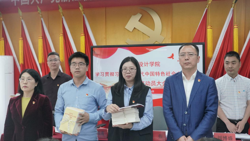 校党委委员、创意设计学院院长邓劲莲、党总支副书记符强向党员代表颁发学习资料。党总支副书记史奕详细介绍了学院党总支主题教育活动各项工作安排。