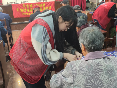 每周的周二、周四上午,在虹金村的老年课堂活动中,总能看到“红马甲”们忙碌的身影。这是由长安镇人民政府协同虹金村共同举办的居家养老服务系列活动,而我们的志愿者也已成为常驻“嘉宾”,雷打不动的每周两次坚持参与,帮助老人们学习制作手工艺品。活动中,志愿者们向参加活动的老年人介绍活动主题与注意事项,为大家分发制作材料、剪刀、胶水等工具并分步骤讲解制作过程,耐心地向大家示范,爷爷奶奶们也认真的学习起来。