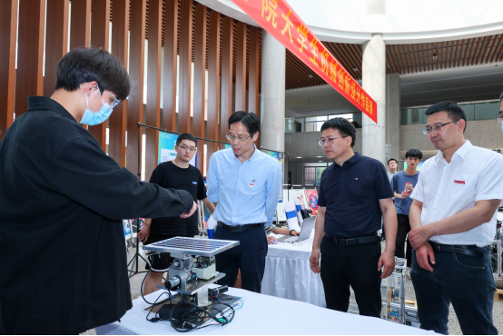 近年来,智能制造学院始终把创新实践教学作为教育教学改革的一项重要举措积极推进,致力于打造以创新综合能力培养为核心的学生实践平台。一直以来,智能制造学院坚持党建引领教学改革,以此推动学院的高质量发展。此次作品展,是智能制造学院对实施创新教学改革成果和经验的梳理和总结。通过听取各方面包括专家同仁、教师和学生的意见、建议,凝练下一步改革的方向和思路,力争把分院的主题教育与创新实践教育深入融合,取得更加丰硕的成果。