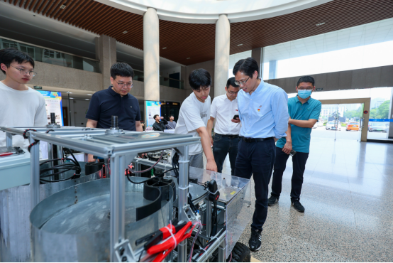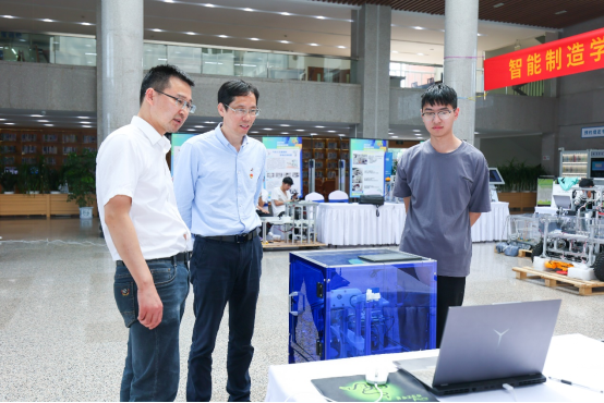 2023年6月7日,智能制造学院在滨江校区图书馆一楼举办大学生机械创新设计作品展,主题是“创新未来制造 携手助农共富”,展出的主要是参加省第二十届大学生机械设计竞赛的优秀作品,匠心筑梦 智造强国——学习贯彻习近平新时代中国特色社会主义思想主题教育。党委委员、副校长周纯江,宣传统战部部长周琳,团委书记林洁,智能制造学院党总支书记楼建忠,副书记汪荣青,副院长蒋立正,相关指导老师及学生代表参加了此次活动。