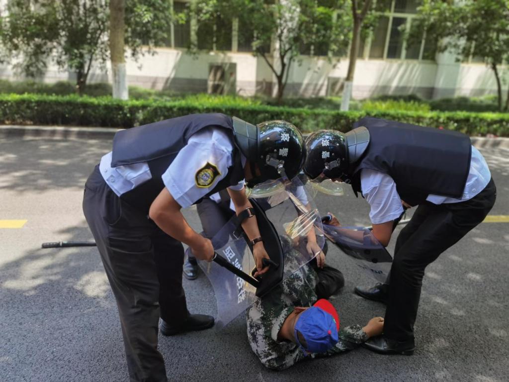 随后,开展以校园安保装备实战使用为主要内容的安防技能培训,基本培训内容主要为队列训练、“防暴器材”的使用、消防应急演练,并结合校园安保工作的实际需要,从校园内治安事件的处置、校园巡逻、交通指挥、防暴技能训练、消防器材等安防设施的使用和管理等方面做了培训。