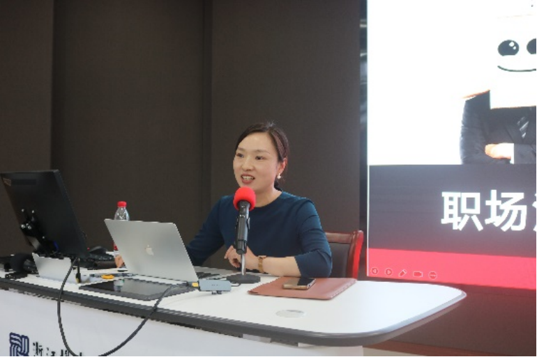 2023年6月12日,现代信息技术学院开展工学结合实习“职场沟通礼仪”讲座。此次讲座邀请杭州玖玖星选科技有限公司人力资源主管黄雪主讲,全体大二班团干部参加此次讲座。